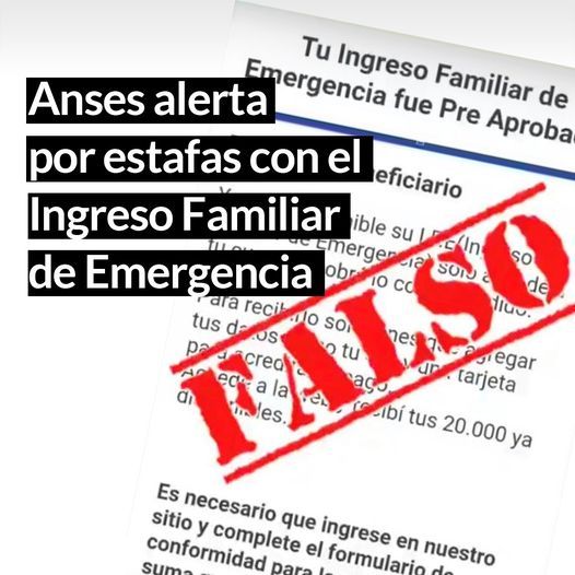 Anses alerta por estafas con el Ingreso Familiar de Emergencia