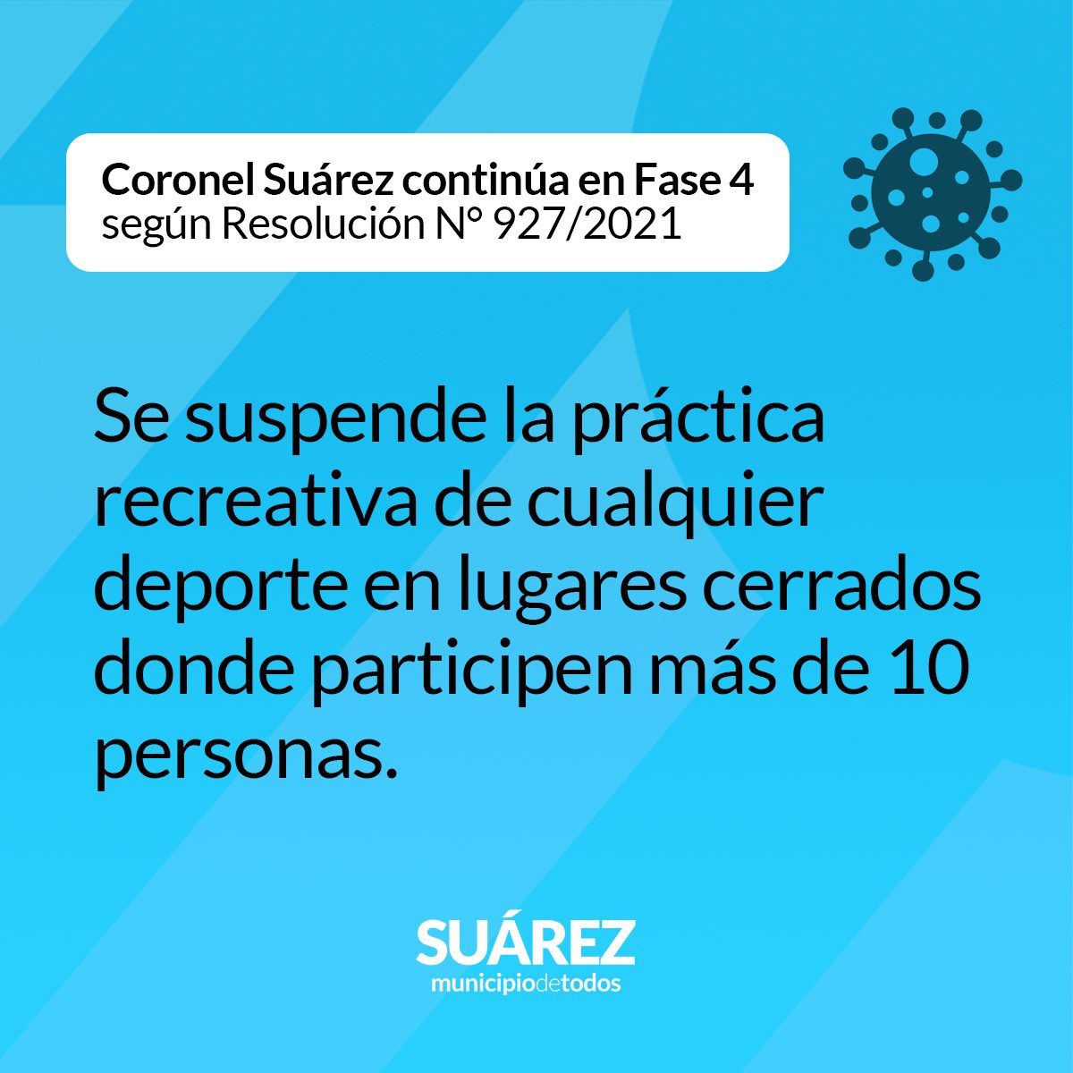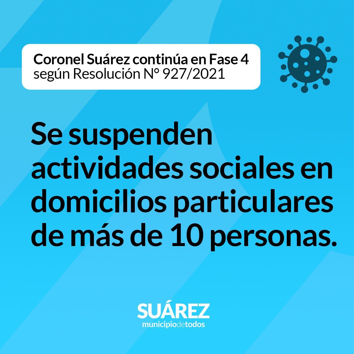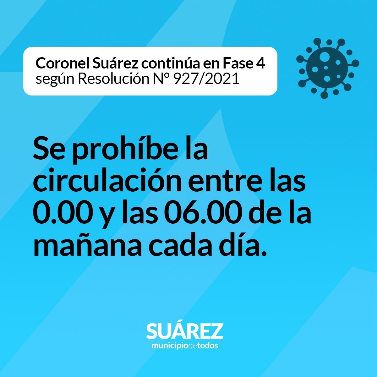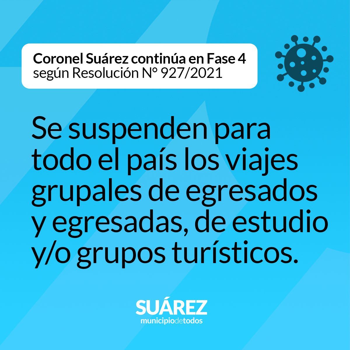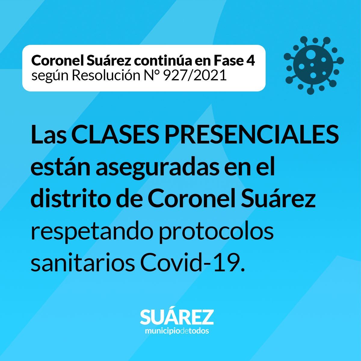 Coronel Suárez continúa en Fase 4 según Resolución N° 927/2021 (Normativa vigente hasta el 30/04/2021)