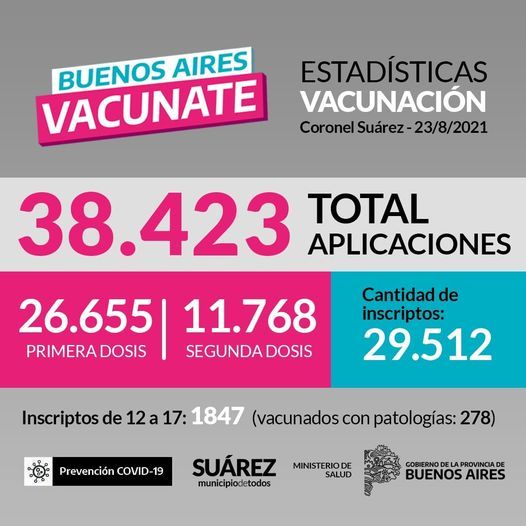 ¡Con un total de 38.423 aplicaciones (26.655 primeras dosis y 11.768 segundas dosis) continúa avanzando la campaña Provincial, Optativa, Pública y Gratuita de inmunización masiva contra el Covid-19!