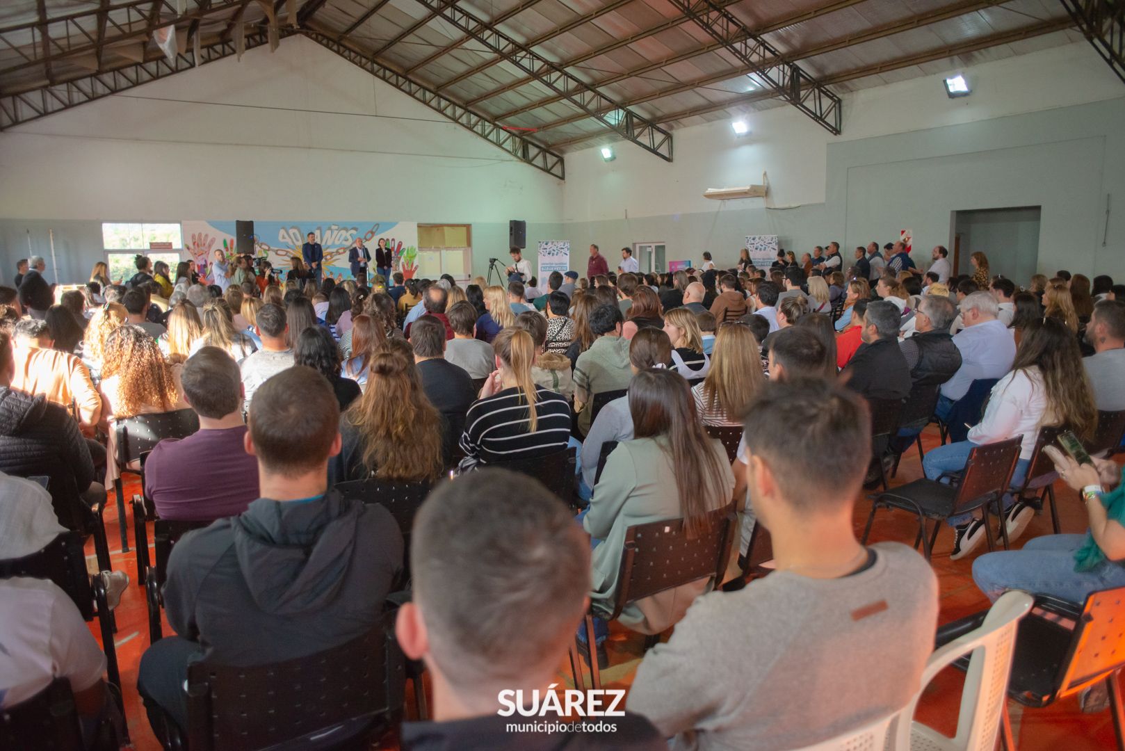 El acto, donde 27 familias recibieron las llaves ‘en mano’ de su primer hogar, se realizó en el polideportivo municipal de Coronel Suárez y contó con la participación del administrador general del Instituto de la Vivienda, Diego Menéndez y el subadministrador, Hernán Ralinqueo.