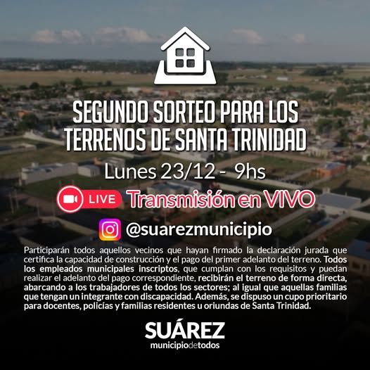 El acto será trasmitido en VIVO por las redes de Suárez Municipio: Instagram @suarezmunicipio.