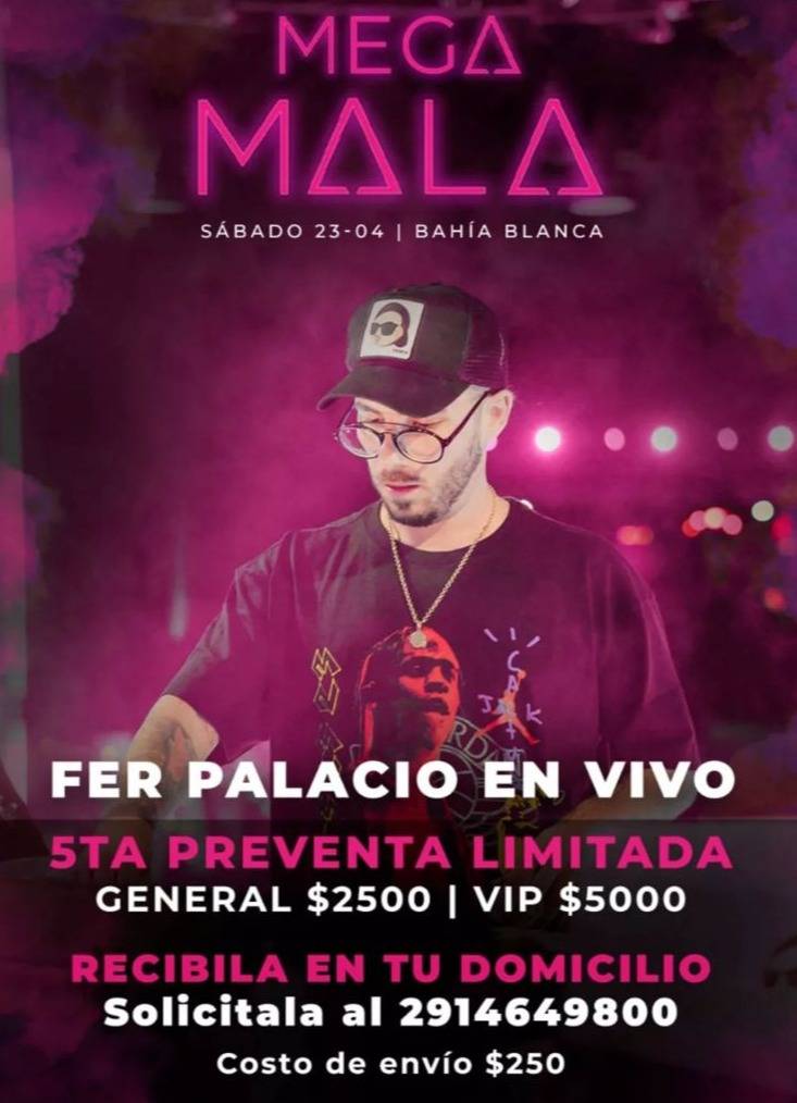 El reconocido DJ Fer Palacio se presentará mañana en el Club Universitario en el marco de la fiesta Mega Mala, un evento que se organiza en diferentes ciudades del país.