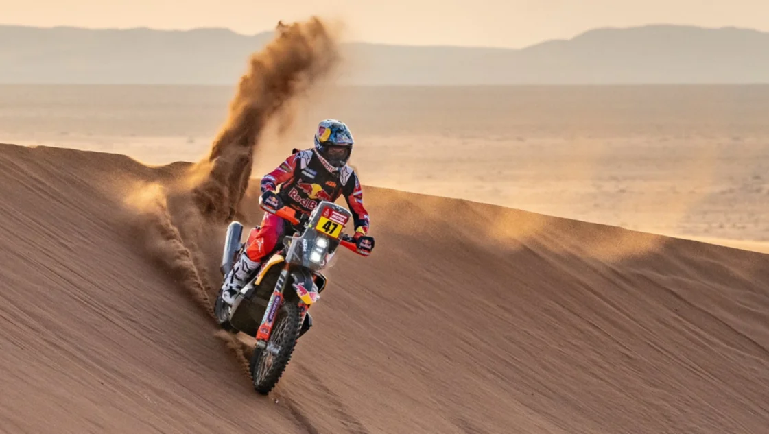 El salteño, ganador de la carrera más exigente del mundo en 2021 y 2023, completó el tramo en 4 horas, 39 minutos, 28 segundos, con una diferencia muy estrecha (+1m.46s.) en relación al inicialmente ganador, el chileno Pablo Quintanilla (Honda).