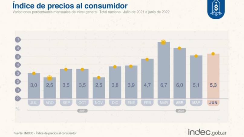 La inflación de junio fue del 5,3 % y el primer semestre cerró en 36,2 %, según el Indec