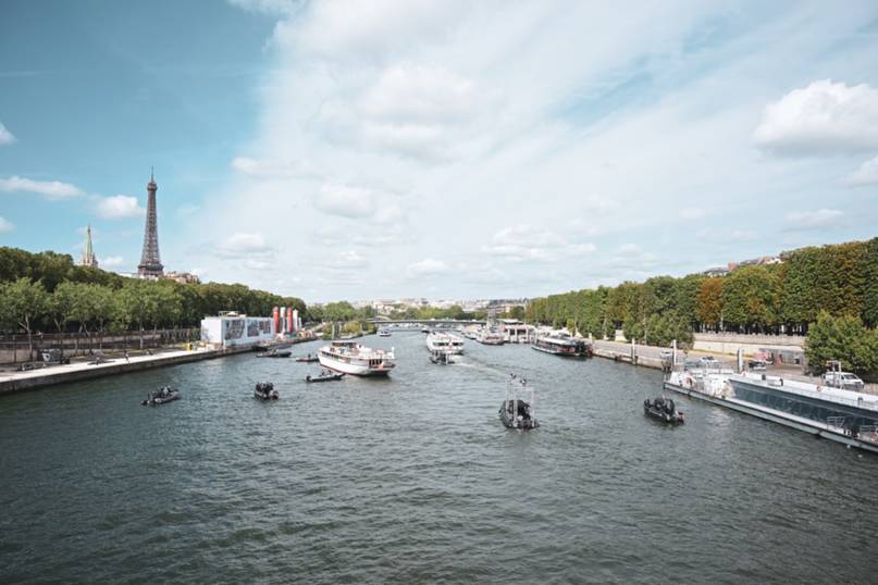 La primera prueba operativa realizada en el Sena contó con 39 barcos de la flota del desfile que navegaron desde Pont d'Austerlitz hasta Pont de Iéna.