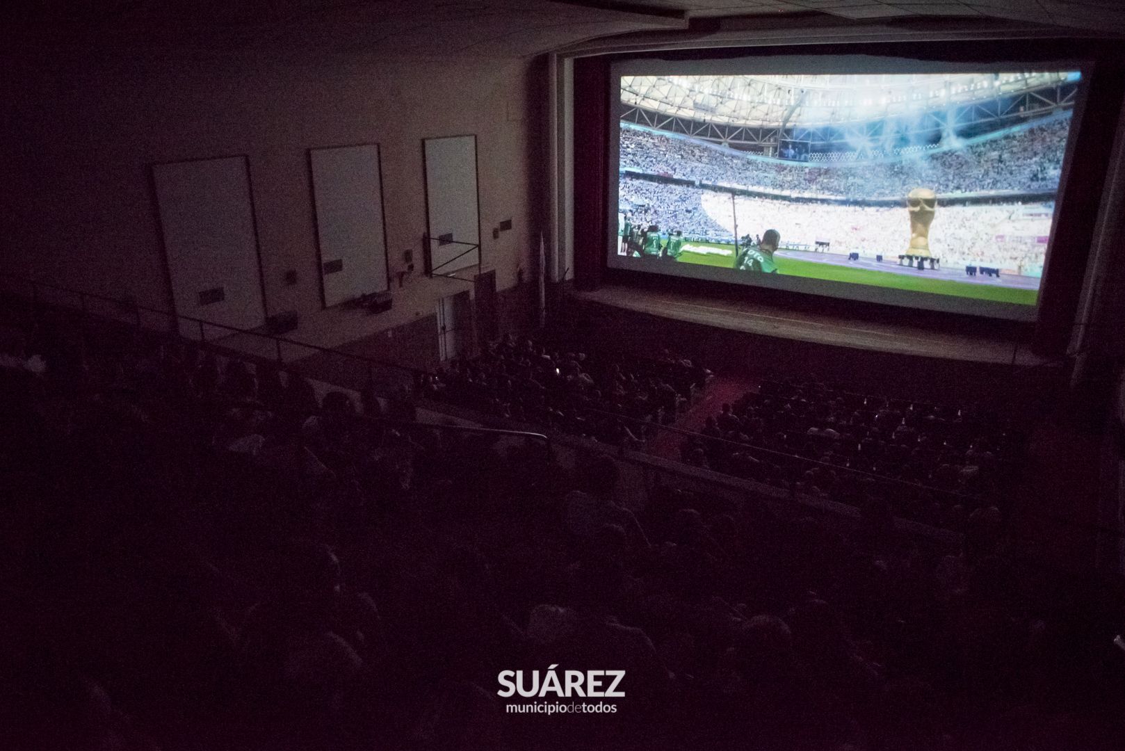 Organizado por el Municipio de Coronel Suárez a través de la secretaria de Gobierno, el cine Italia se colmó de hinchas que vivaron al genio de Messi junto a los pibes de la selección Argentina que levantaron la Copa Mundial en Catar 2022.