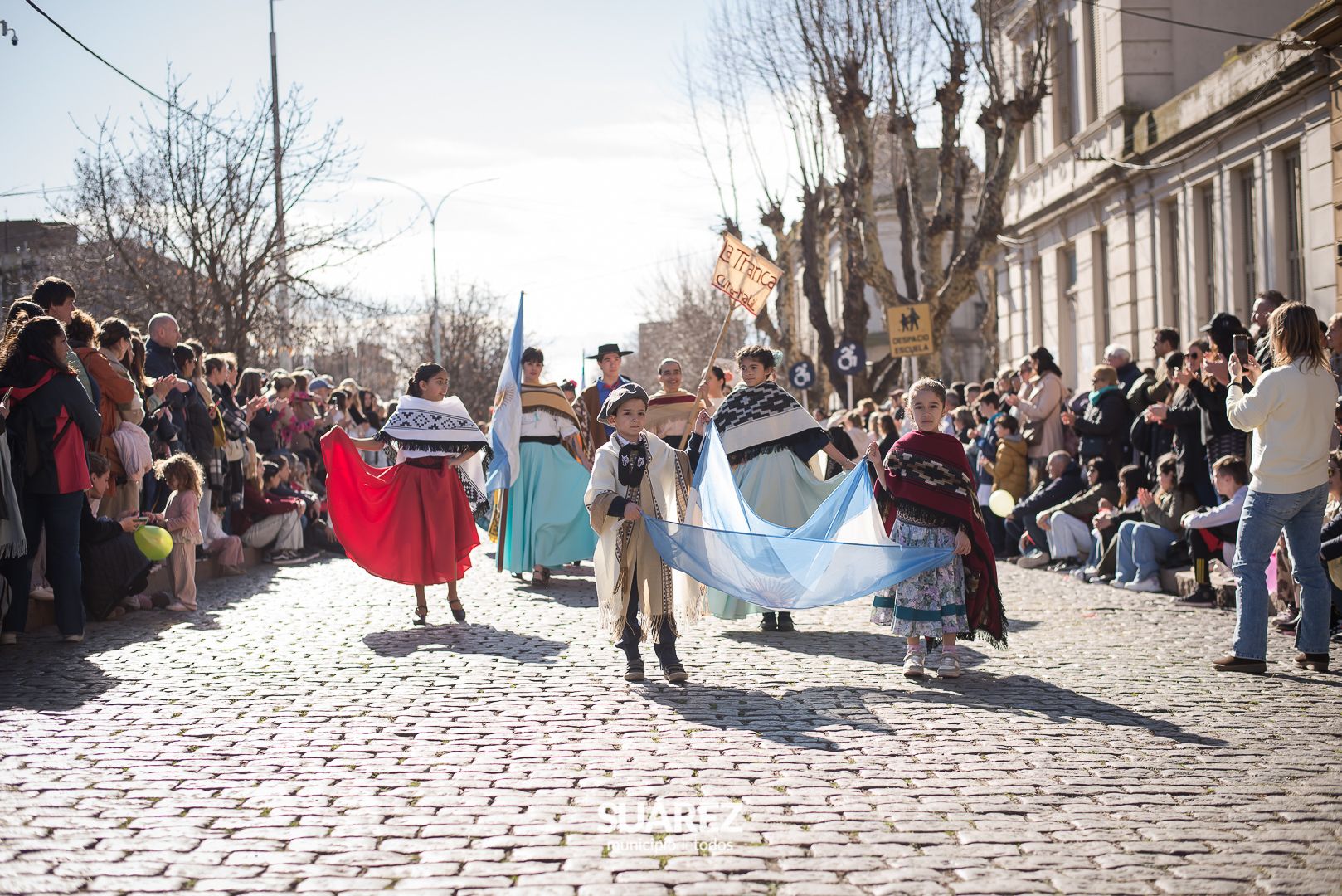 Con el paso de la Banda Municipal “Bartolomé Meier”, se desplegó un colorido desfile de instituciones educativas, clubes, agrupaciones gauchas, entidades de bien público y fuerzas vivas, que dieron vida a una verdadera fiesta popular.