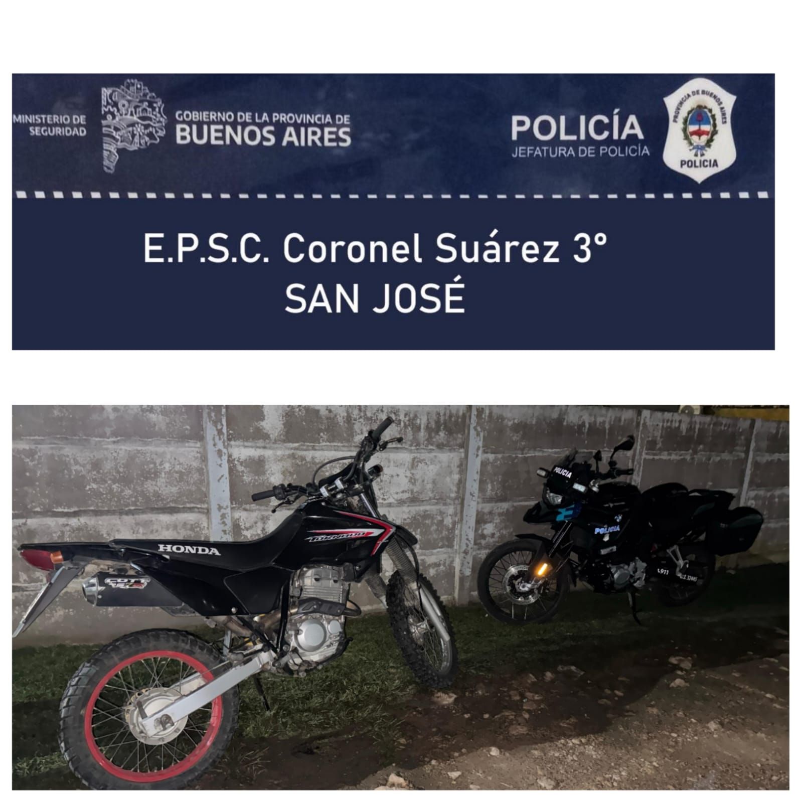 El 10 de marzo de 2026, a las 20:45 horas, en Avenida Alemanes del Volga y Juncal, localidad de Santa Trinidad, personal policial labró infracción a un ciudadano mayor de edad, por Ordenanza Municipal N° 8305, Artículos 1 y 3, procediéndose al secuestro de un motovehículo de 250 cc.
