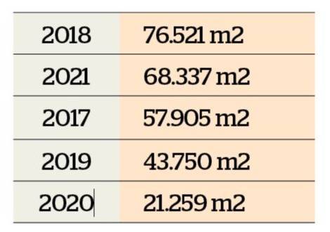 En este caso sumaron para el primer cuatrimestre de este año 46.947 m2. Esto significa, para ese período, un total de 115.284 m2, poco más del doble de los 51.515 m2 totalizados para igual período de 2020.