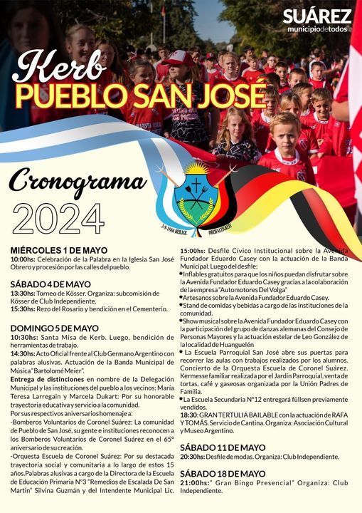 El Intendente de Coronel Suárez Ricardo Moccero junto al delegado de Pueblo San José Daniel Schwindt y las instituciones de la segunda colonia alemana, invitan a la comunidad a participar del cronograma de actividades organizado con motivo de una nueva Fiesta Patronal.
