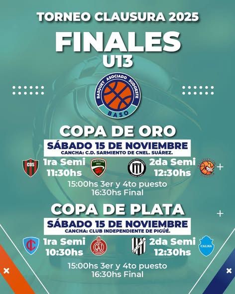 Sábado 15 de noviembre *Copa de Plata en U13* con los siguientes encuentros:
