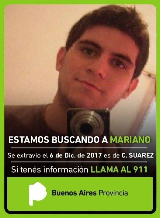 Mariano vivía en Coronel Suárez, poco antes de su desaparición había conseguido trabajo en una pizzería y cursaba en La Plata las carreras de Economía y Periodismo.