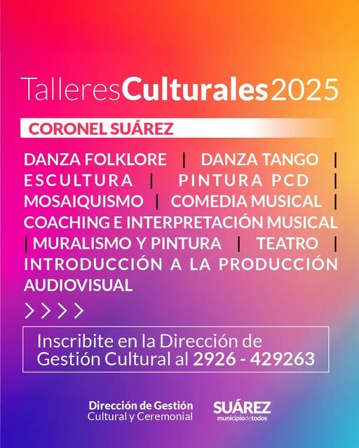 Atención Coronel Suárez: inscribite en los Talleres Municipales Culturales 2025