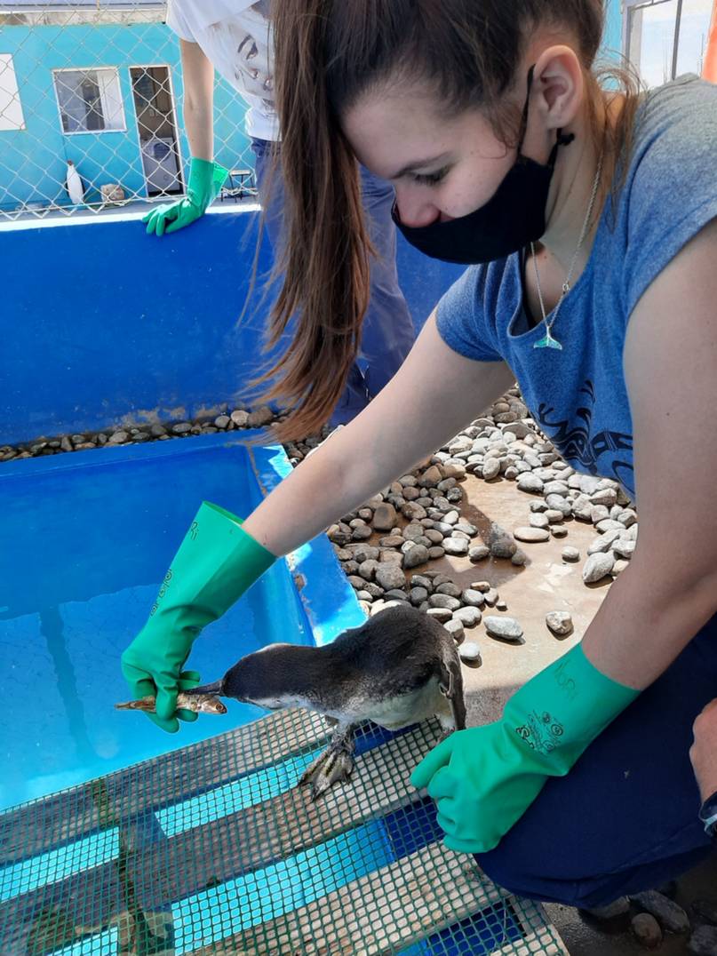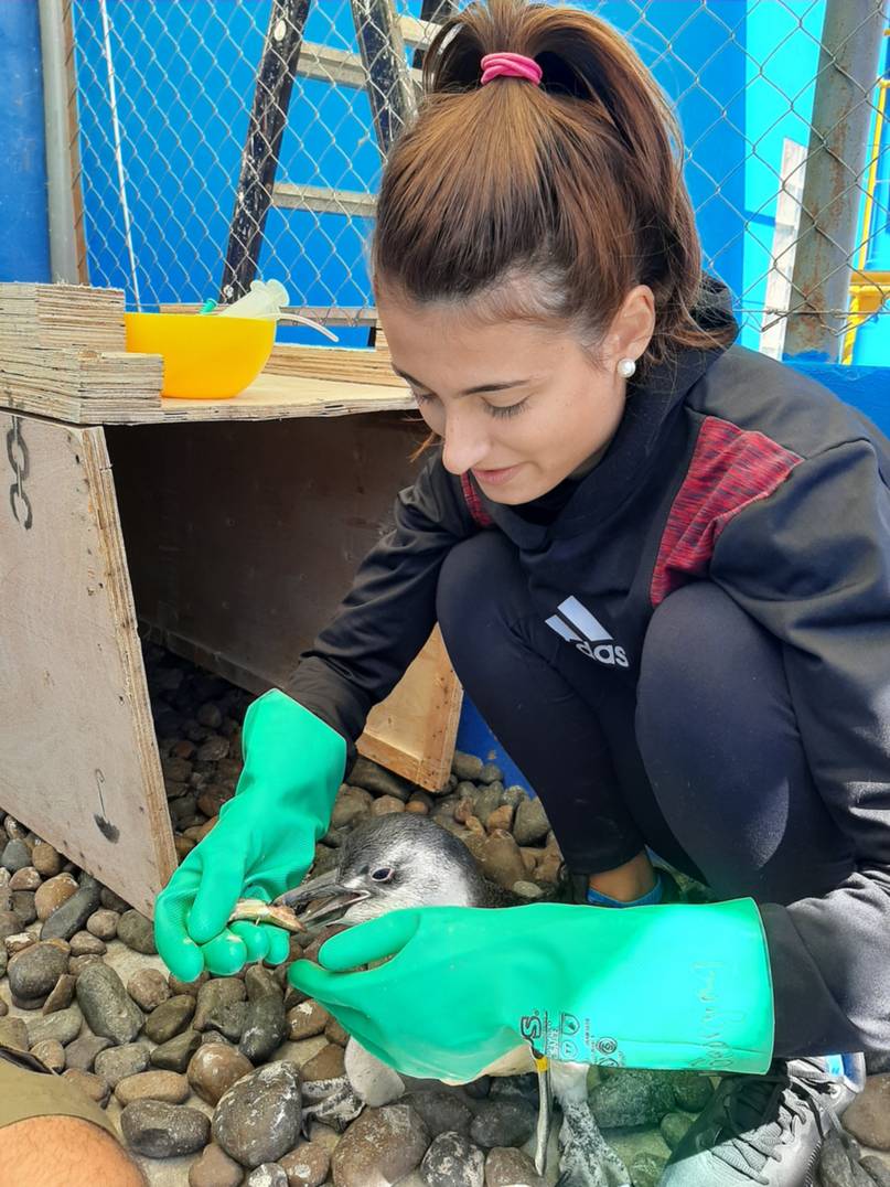 Hoy, a los 23 años, siendo estudiante del 4º año de la carrera de Oceanografía, especializada en Química Marina, en la UNS, decidió donar su tiempo y esfuerzos para rehabilitar a los pingüinos (y otros animales marinos) rescatados en la costa, que por distintos motivos, requerían de cuidados especiales para regresar al mar.