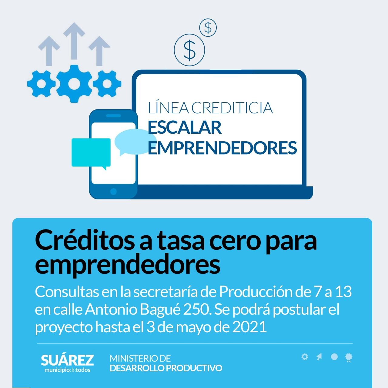 Los interesados en sumarse a la línea crediticia “Escalar Emprendedores” podrán consultar en la secretaria de Producción de 7 a 13 por calle Antonio Bagué 250.