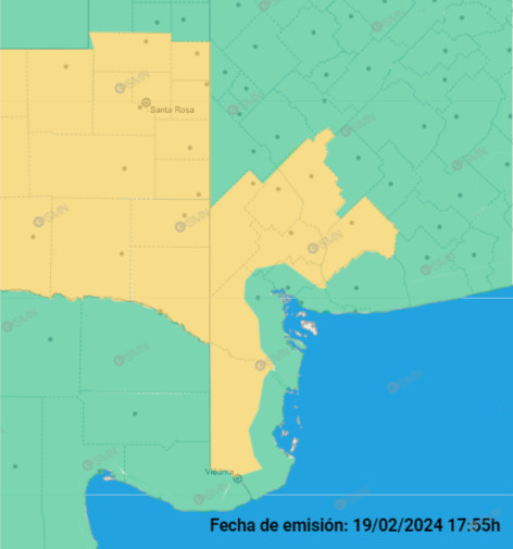 El aviso abarca las zonas denominadas "norte de Bahía Blanca, oeste de Patagones, oeste de Villarino, Puan, zona baja de Coronel Pringles, zona baja de Coronel Suárez, zona baja de Saavedra y zona baja de Tornquist".