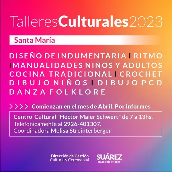 Interesantes y atractivas propuestas que impulsa el Municipio de Coronel Suárez a través de la dirección de Gestión Cultural