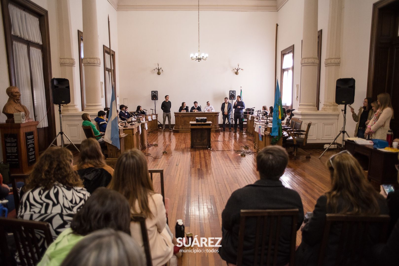El Jefe de Gabinete Mauro Moccero junto a la Jefa Distrital de Educación Andrea Acosta y el director de Educación Maximiliano Margiotta acompañaron este jueves 13 de julio, a los más de 100 jóvenes de 13 establecimientos educativos del distrito en la etapa distrital del Parlamento Juvenil del Mercosur 2023. Los alumnos que fueron elegidos por sus proyectos por sus pares, como representantes de Coronel Suárez para la etapa Provincial fueron: Camila Schwab de la Escuela de Educación Secundaria N° 9 y Francisco Gómez Corro del Fasta San José.