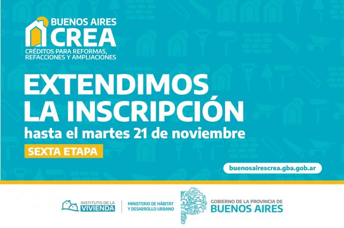 La Provincia prorrogó hasta el 21 de noviembre el límite para anotarse al programa de créditos. Se trata de la sexta convocatoria para las familias de los 135 distritos bonaerenses.