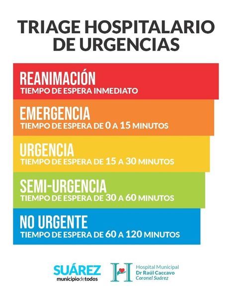 El Municipio de Coronel Suárez a través del servicio de Emergencias del Hospital Municipal “Doctor Raúl Caccavo” dispuso la inversión en infraestructura, capacitación y personal para implementar progresivamente a partir del mes de noviembre, el sistema de TRIAGE HOSPITALARIO, que consistirá en organizar la atención de los pacientes, priorizando la gravedad de la patología que presentan, de acuerdo con los parámetros dispuestos a nivel mundial por la OMS.