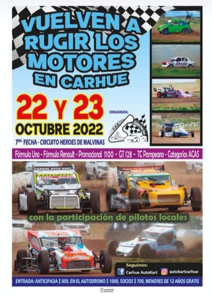 LA COMISIÓN DIRECTIVA DE A.C.A.S. JUNTO AL Carhue AutoKart CONFIRMAN LA SÉPTIMA COMPETENCIA DEL CALENDARIO 2021/2022 PARA LOS DÍAS 22 Y 23 DE OCTUBRE EN EL CIRCUITO HÉROES DE MALVINAS DE LA CIUDAD DE CARHUE.